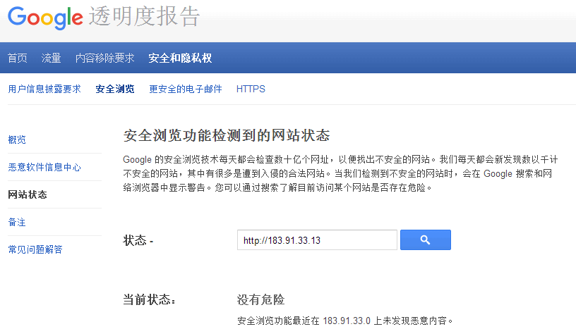 可以参考下谷歌的网站状态,当前并没有危险: