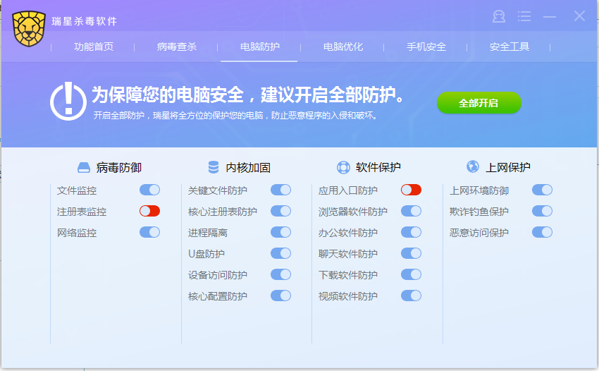 还是“注册表监控”和“应用入口防护”不能开启吗?