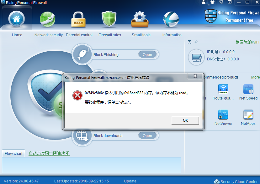 突然发现防火墙所有防护都是关闭状态,一开启防火墙就弹出什么内存报错弹窗,点确定就什么都没有了,这是怎么回事?