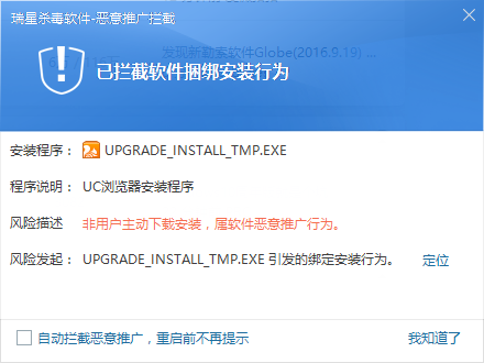 结果: uc自己下载的 更新程序 被 瑞星拦截了