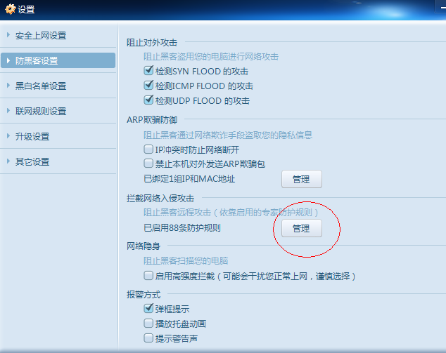 可否帮忙看看防火墙设置里的 防黑客设置——拦截网络入侵攻击里的防护规则,是否是默认设置全部开启的?