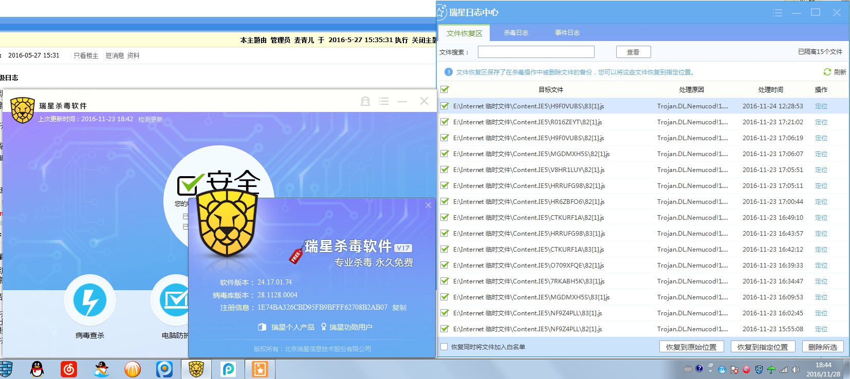 查看瑞星日志时,发现有疑似误报文件的嫌疑。(如图所示)