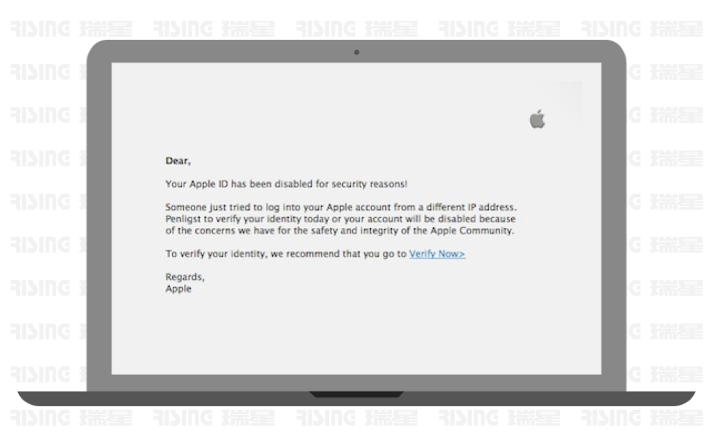 近期,瑞星公司发布了《2017年2月反诈骗安全报告》,报告显示,苹果用户在2月期间受诈骗网站攻击较为频繁,不法分子向苹果用户发送带有诈骗链接的短信或邮件,以各种理由骗取用户点击诈骗链接,如Apple账户存在异常、用户中奖或手机丢失等,一旦用户点击诈骗链接,可能遭受严重的经济损失。