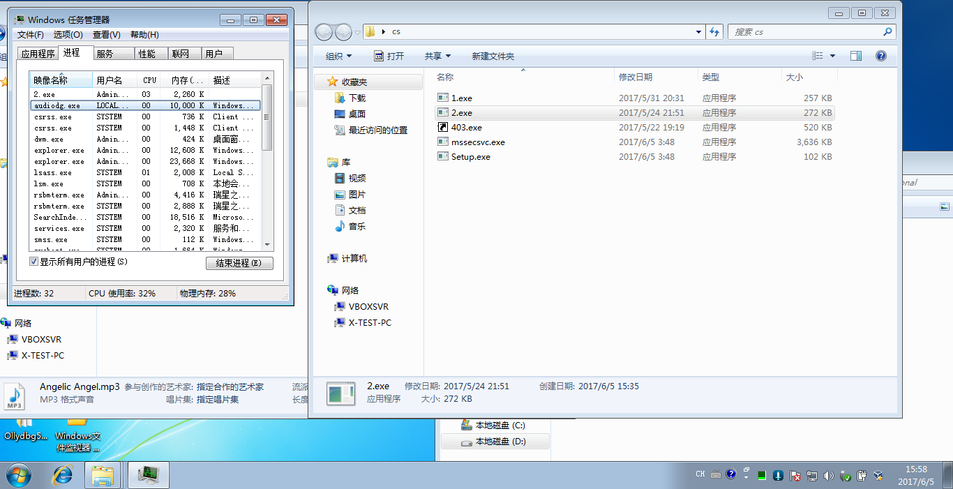 虚拟机,Windows 7 SP1 Ultimate x86,2核,1.5G内存,2个分区