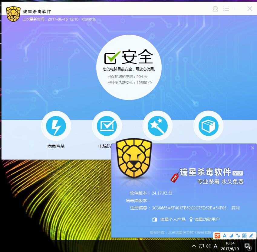使用瑞星联盟版的时候,发现病毒库版本显示不全的现象,希望相关工作人员在下一个版本对此进行优化。谢谢!(如图所示)
