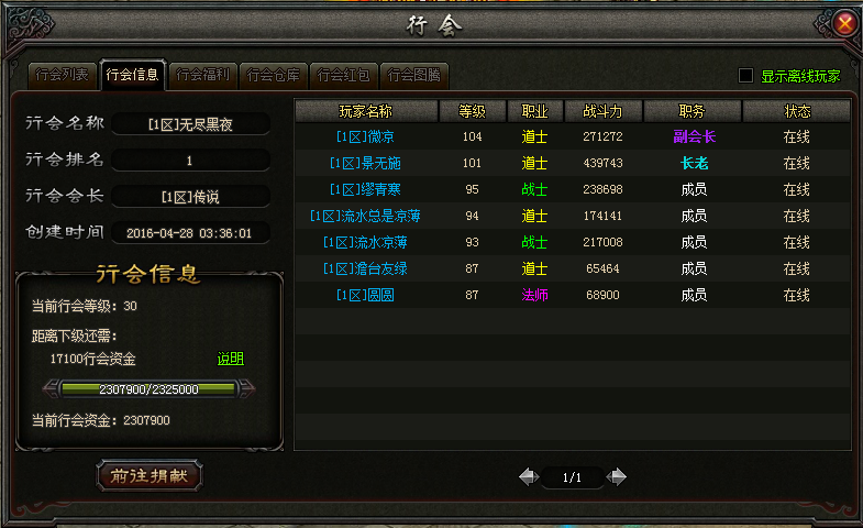 玩家可通过捐献金币或装备来建设行会获得贡献度