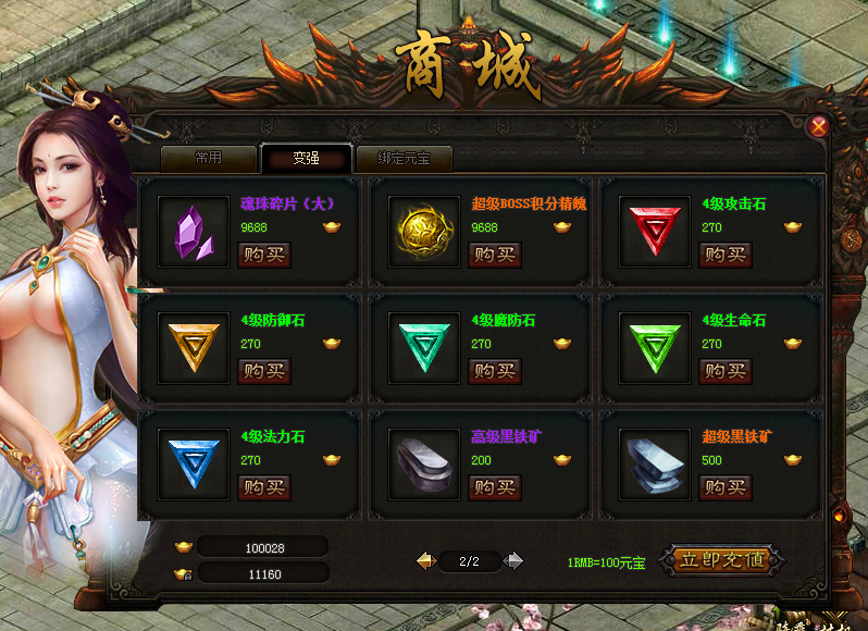 玩家通过商城购买获得灵石,灵石等级越高属性加成越高。