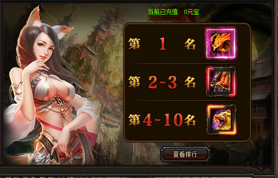 第一名获得永久坐骑——浴火凤凰,2-3获得永久坐骑——瑞兽麒麟,4-10可获得永久坐骑——阎罗谛听