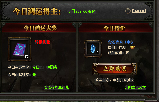 玩家可购买超低折扣道具,购买道具即可获得一个随机数字。每天晚上