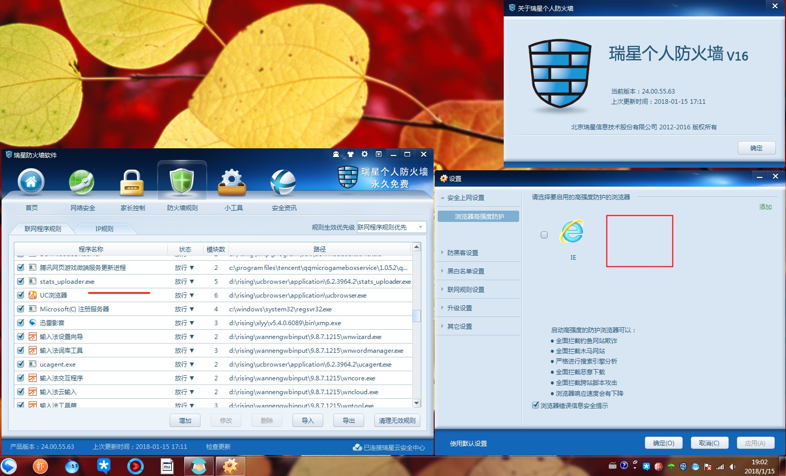 查看防火墙设置时,发现没有保护UC浏览器。【如图所示】
