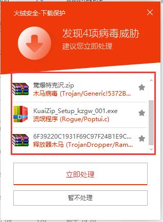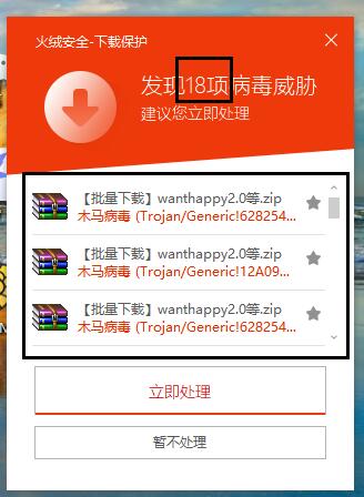 你们看 它 同时发现了 多个病毒, 将 报毒窗口合并一次提示用户 ,多好啊!!!