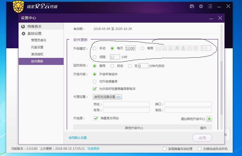 关于升级问题我提出个人建议,是否能增加自动升级一项,而不是采用时间点升级,错过了时间点升级就要手动升级版本与病毒库。