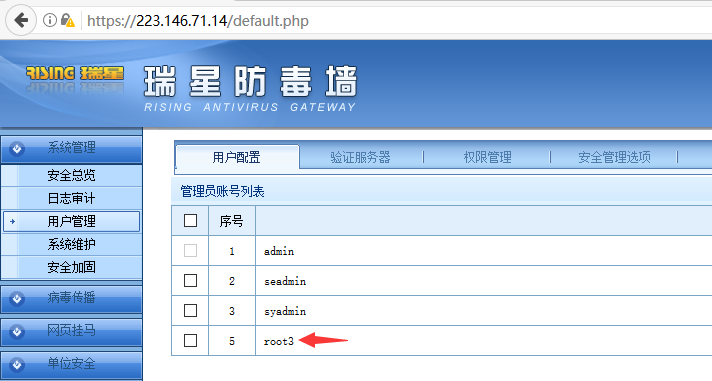 如果不使用admin登录防毒墙,能够成功创建web管理账号,那才可以说防毒墙有安全漏洞。