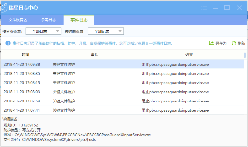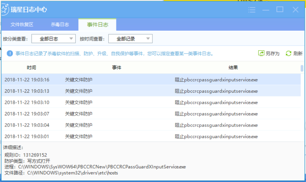 瑞星是默认设置默认规则吧?已转相关人员处理