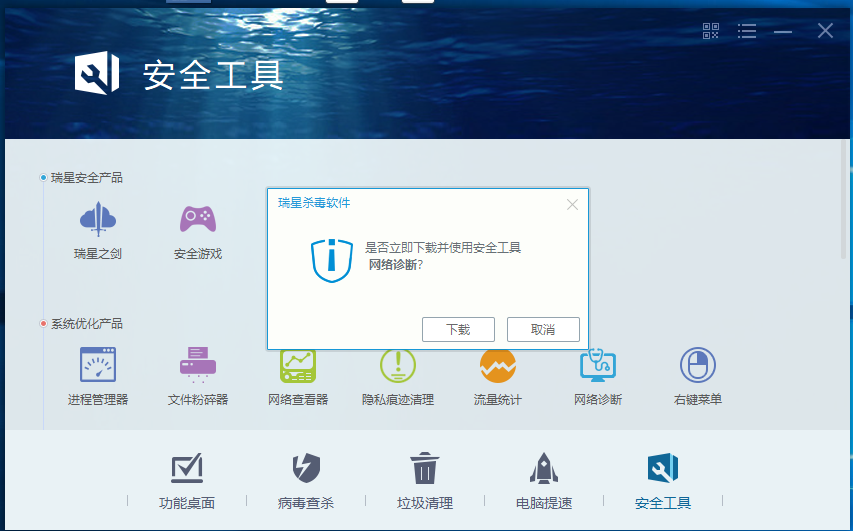 突然发现电脑网络不行了, 浏览器打不开网络,我想修复一下网络 ,结果发现瑞星还需要下载!!!