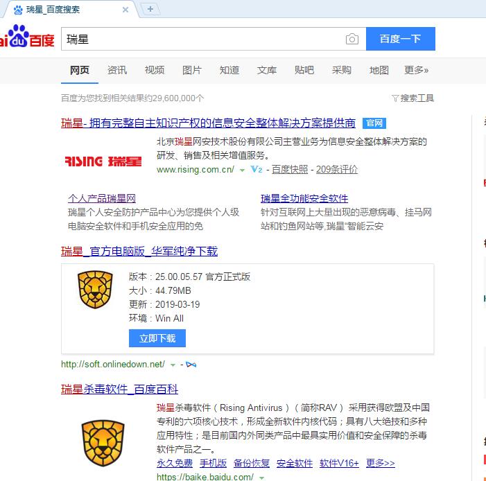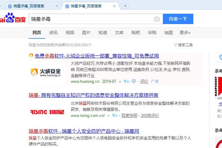 回复楼主,:kaka12: 使用百度搜索的时候,打一些关键字的时候,也出现过广告的现象,不要在意百度里出现的火绒广告,毕竟百度公司也是要吃饭的。天下没有免费的午餐哈!我觉得百度里搜【瑞星】有您想要结果就可以了。其它的不重要了。