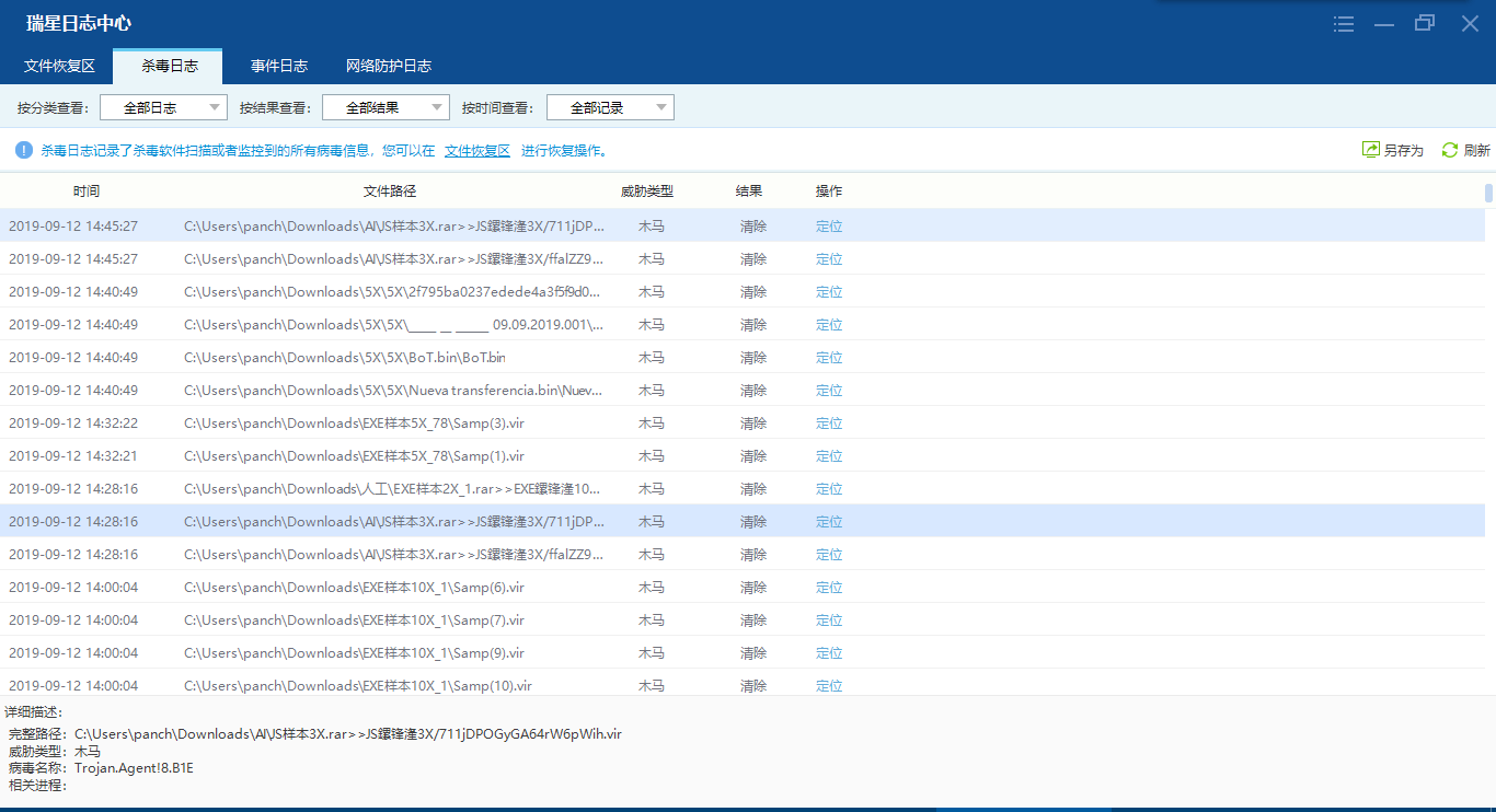 奇怪的是,“日志显示清除,实际文件还在。重复操作依然提示清除”的那两个,我这边测试直接查杀压缩包,是可以处理掉的,报了清除后压缩包里原本仨文件只剩下一个了。测试版本:V17 25.00.06.23(病毒库版本 31.0912.0003)