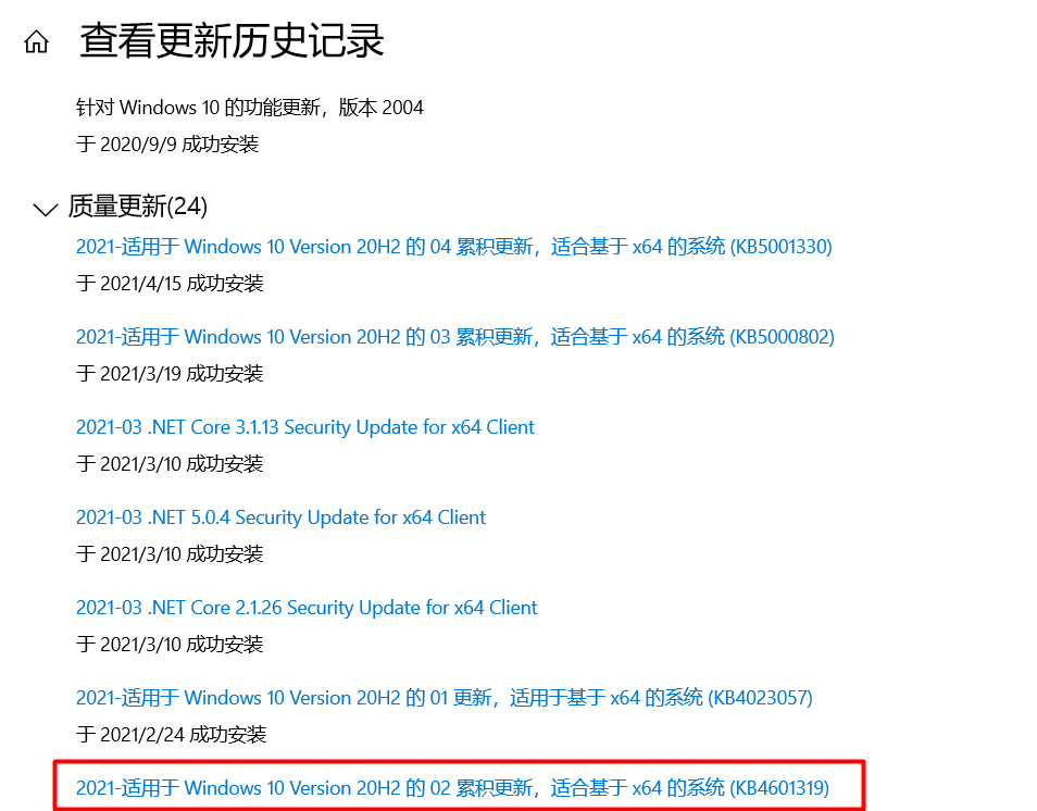1.Win10设置里“查看更新历史记录”