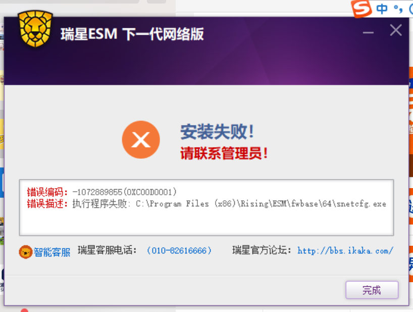 执行程序失败:c:..\Rising\ESM\fwbase\64\snetcfg.exe怎么解决啊