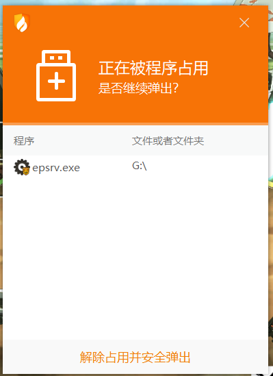 如图,退出U盘总是会这样,原先用火绒能解除占用把U盘退出来但365好像会有点异常,最近UI改了后似乎就不行了