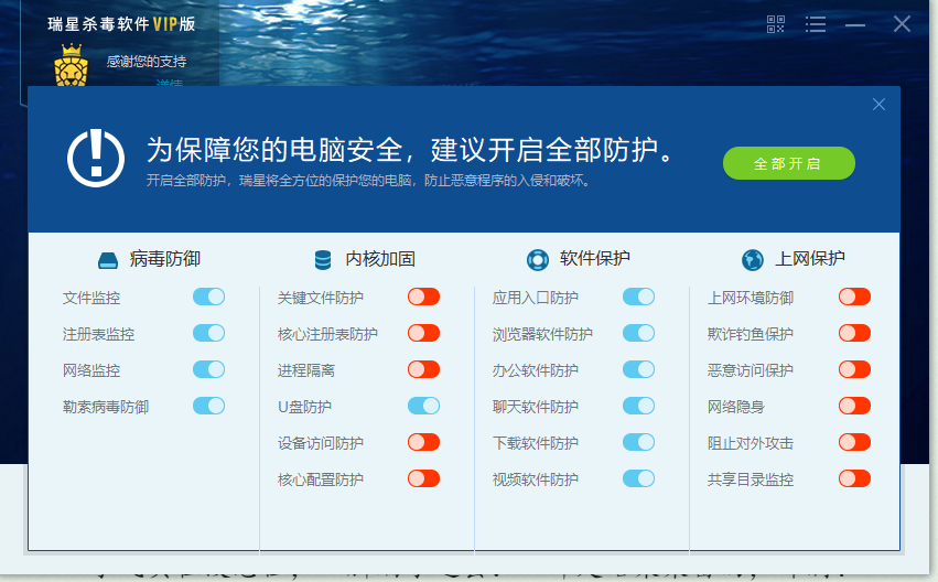 今天我查看瑞星杀毒软件,又变成全部防护为什么开启不了,手动开启也没有用的状态了,真是奇了怪,我不打游戏,就平时看下网页,瑞星为什么就保护不了呢?mcafee security这个软件卸载不了,不知量否这个原因