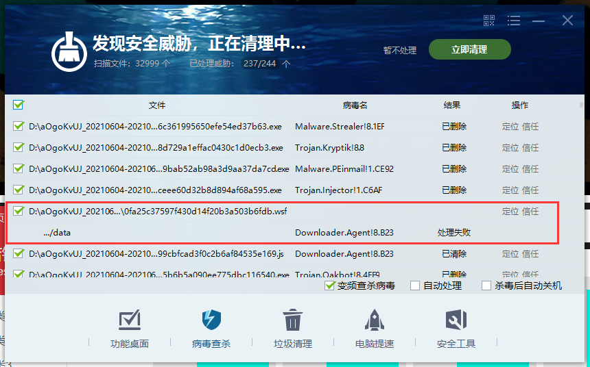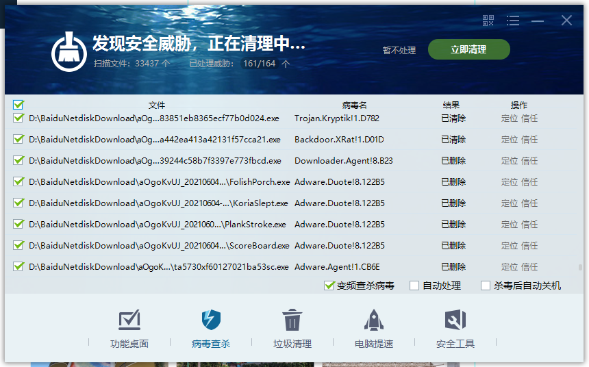 处理失败,看截图还是在百度网盘目录下的,怀疑是被扫描文件在共享里导致的。