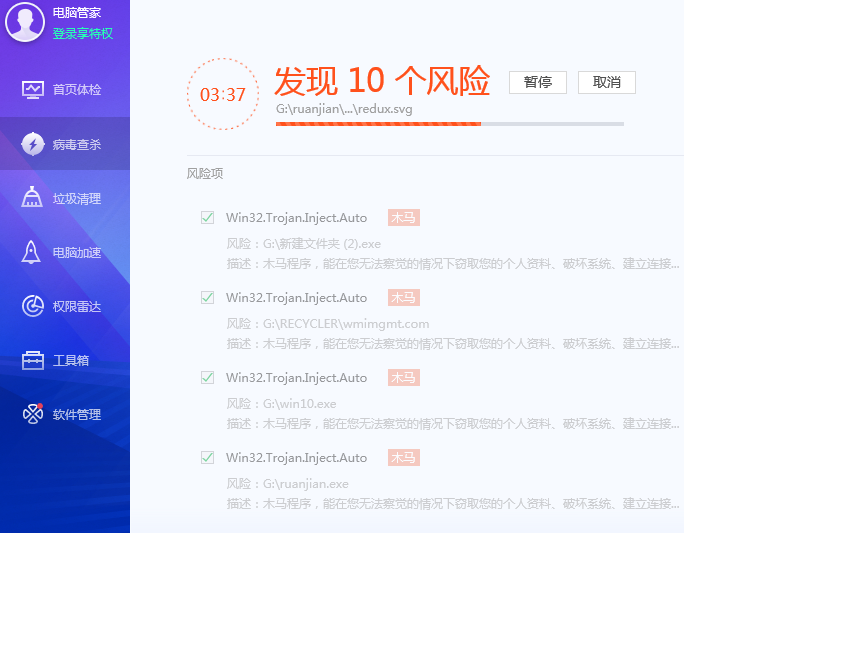 如果已经用电脑管家杀掉了,试试能否从隔离区恢复出来,一并压缩后发来。
