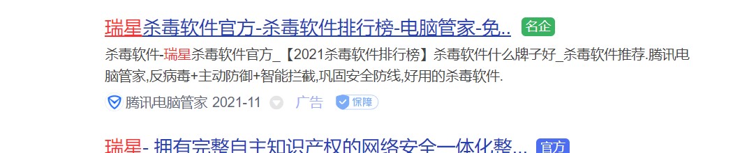 感觉这已经踩在别人头上打广告做截流了……查瑞星时第一个占用关键词候选结果的是腾讯电脑管家;搞竞价排名,查别人家产品时顶多是有某讯他们的相关推广,查瑞星时直接把关键词都给占用了