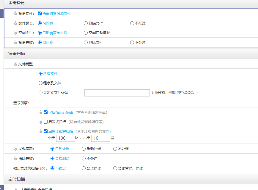 能不能允许终端脱离统一设置?部分设置强管控锁定,部分让用户可以自选不必和管理中心一定同步,比如病毒自动处理还是手动处理