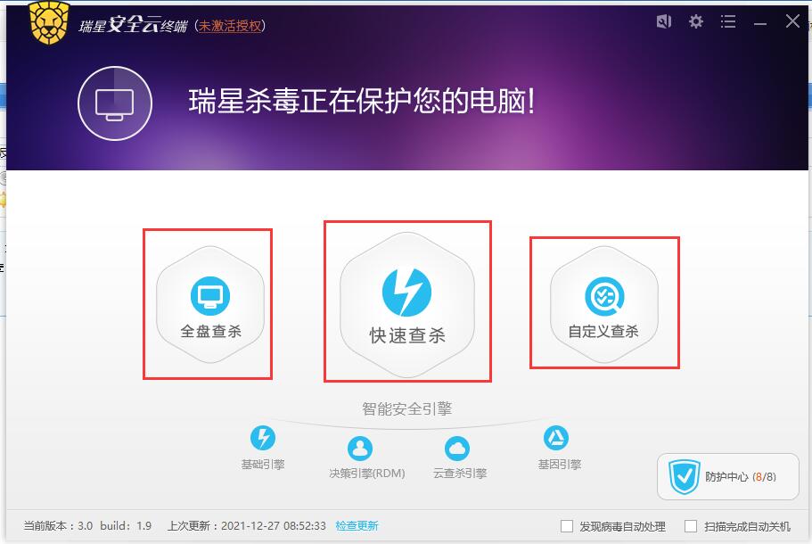 无论是点击全盘,还是快速扫描, 瑞星无法进入扫描页面,一直显示主页面!!!