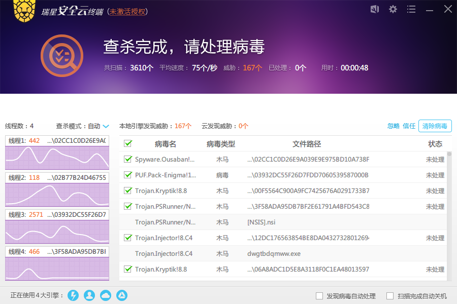 就是社区扫描版报(MD5引擎)或者VT上报(CLOUD结尾的),而安全云终端没报,我确定有些并不属于云屏蔽的范围。还有就是4楼我跟你说的那种情况,在云引擎不检测的情况下,把公有云关了重新打开则可以检测。之前V17的情况好像比较少,只是偶尔会出现,但这个云终端频率实在是太高了。