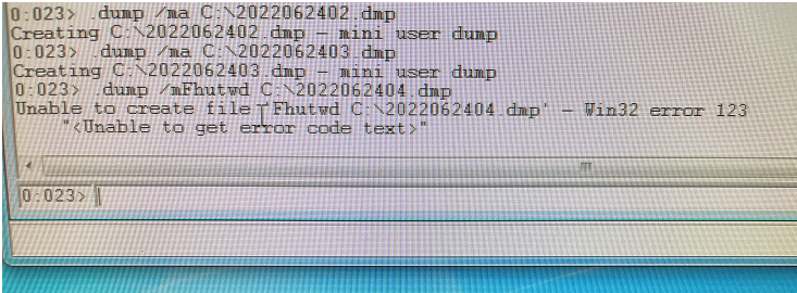 是管理员启动的,如图所示使用mFhutwd参数生成dmp文件失败。使用ma参数可以生成dmp。但是dmp文件特别大超过1G了。无法通过邮箱附件发送。