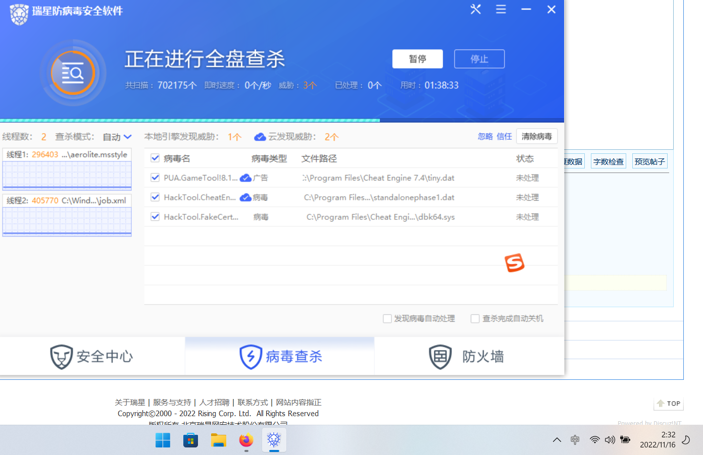 4.病毒查杀到一半页面卡住了,安全中心会动,病毒查杀分页会卡住 过一会又好了]