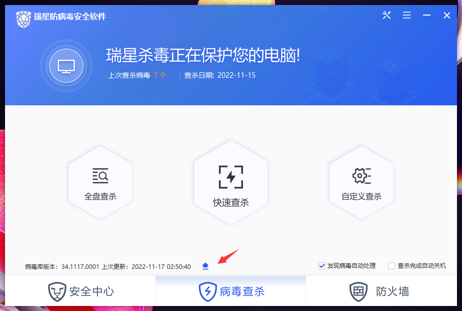 刚刚发现,没有问题的。主界面显示的是版本升级时间,而杀毒界面显示的是病毒库升级时间。没有问题。