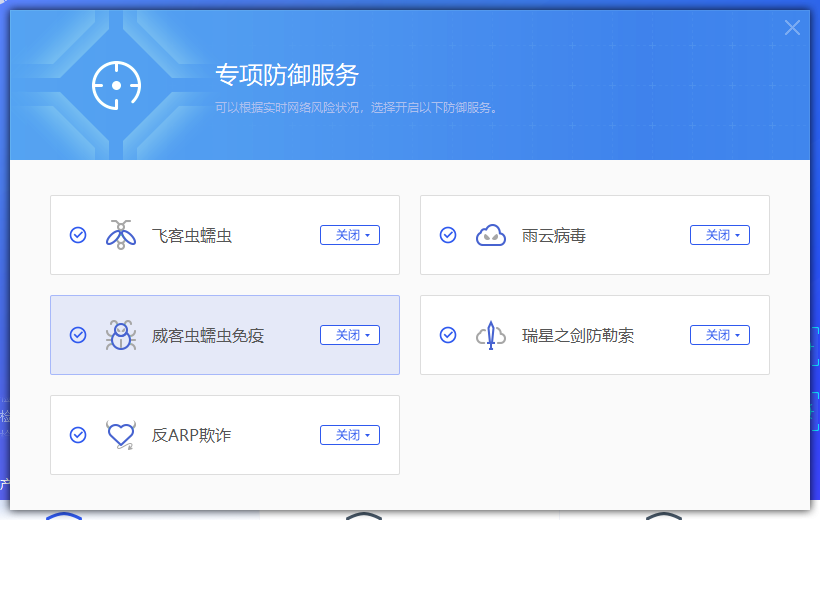 如题,1.建议专项防御页面取消开启关闭按钮右边的三角箭头,这样很容易给人感觉有其他的下拉设置功能,而实际上并没有。