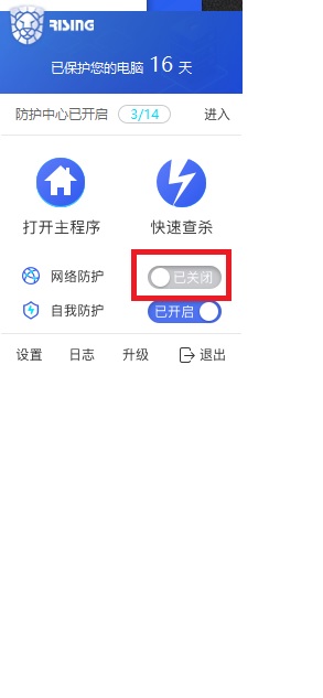 正常来说关闭网络防护不应该影响系统防护,而且开关的逻辑建议重新梳理一下,子项开关可以自由选择打开或者关闭,总开关就是全部控制,一次全开或者全关。如果子项有部分关闭的,点了总开关进行打开,则应该全部可以打开。