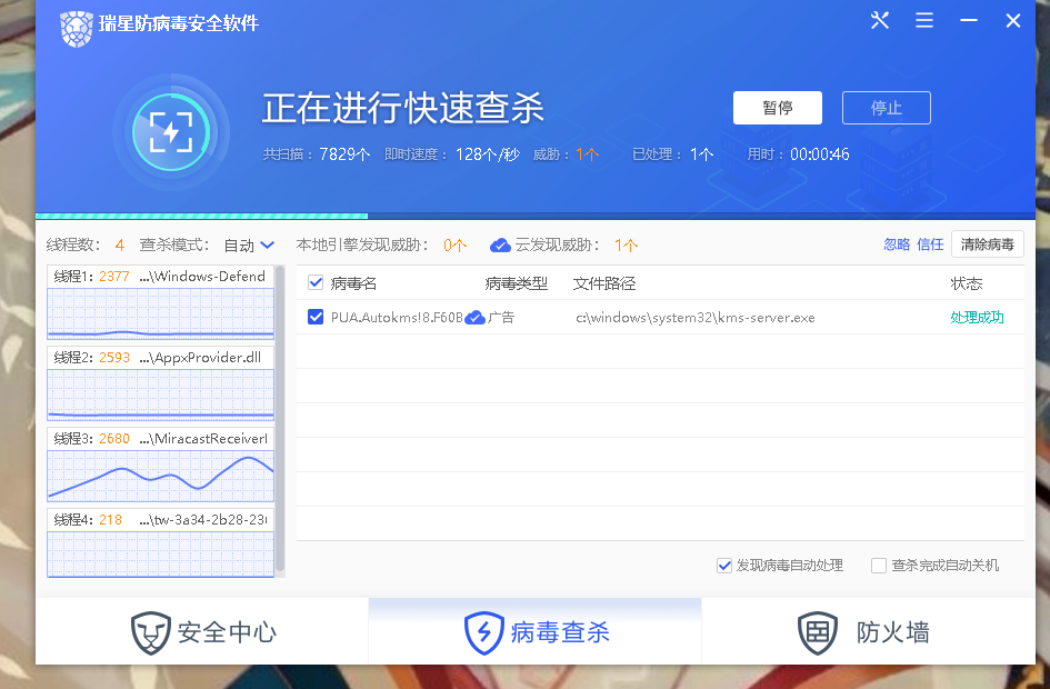 大文件查杀优先级最低,到查杀最后才开始,开始时可以利用多线程查杀,就像下载工具一样把文件分块查杀。