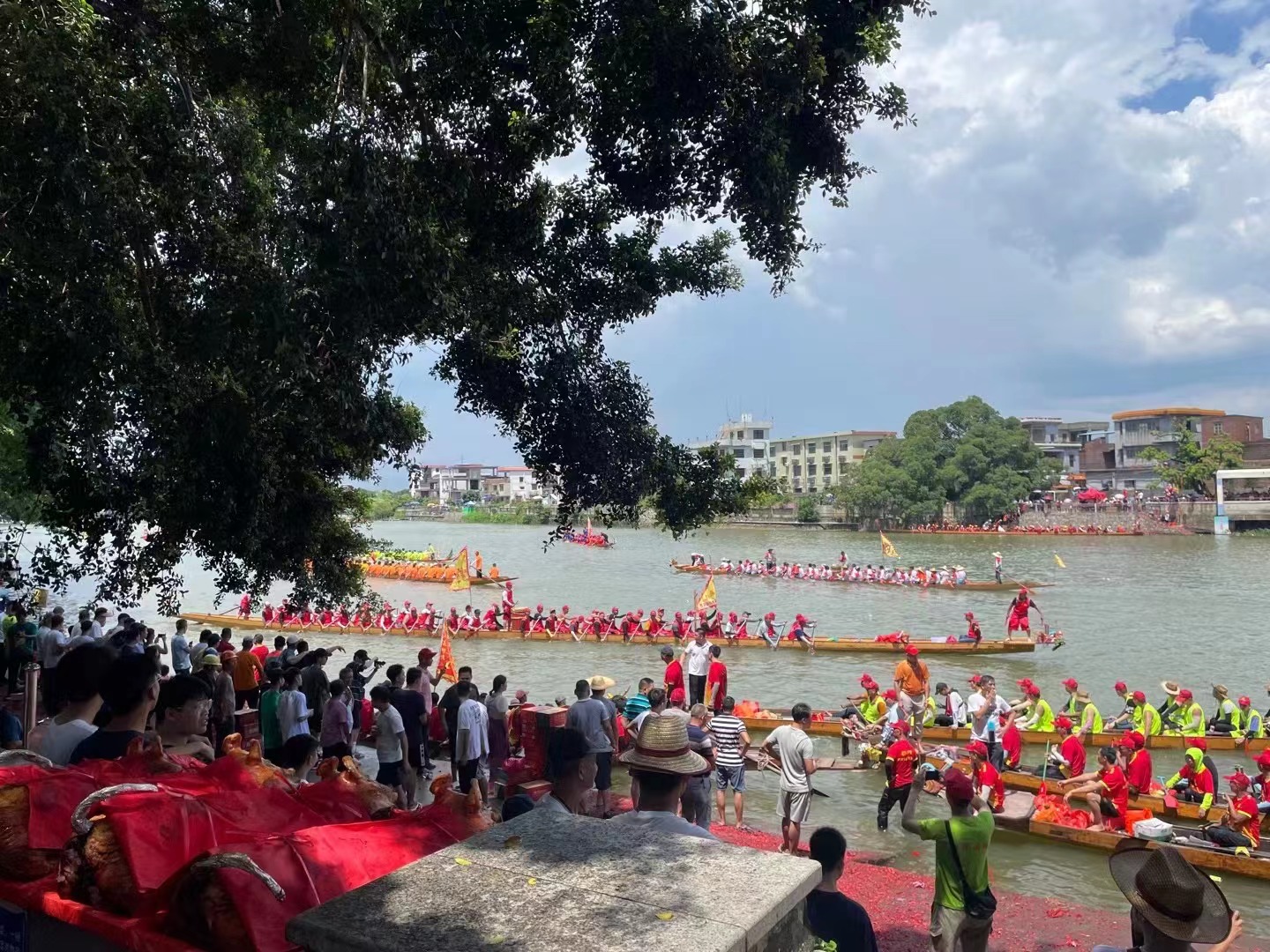 关于赛龙舟的起源,有多种说法,有祭曹娥,祭屈原,祭水神或龙神等祭祀活动,其起源可追溯至战国时代。赛龙舟先后传入邻国日本、越南及英国等,是2010年广州亚运会正式比赛项目。