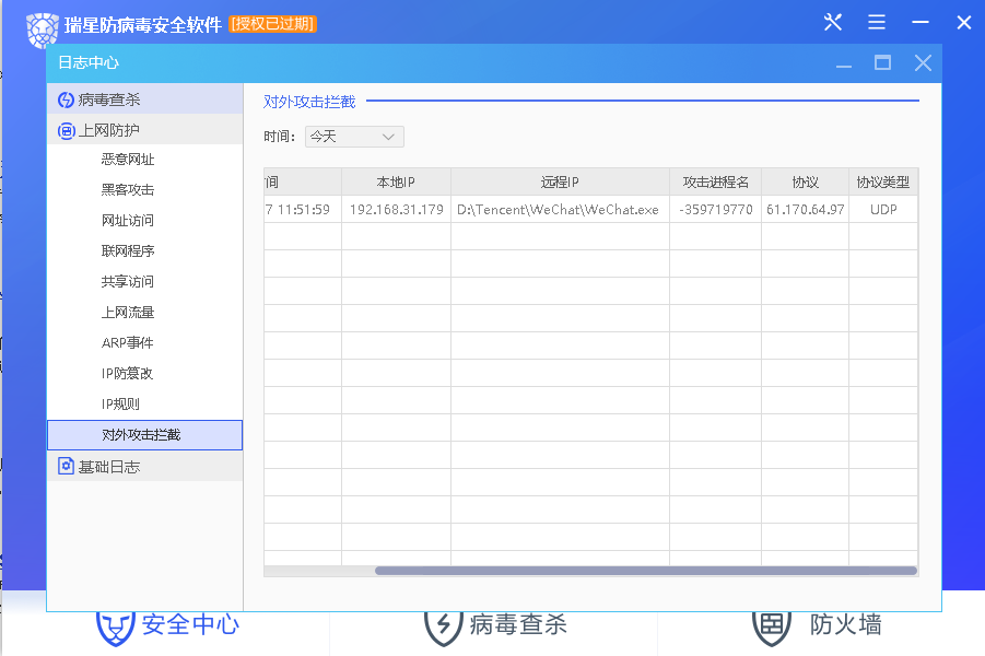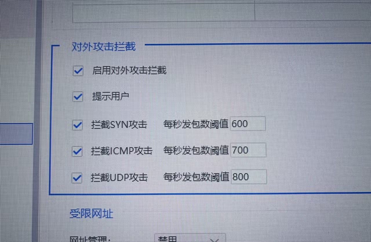 网络防护设置——对外攻击拦截,请把UDP 拦截关了或者把 对外攻击拦截的阈值调高。由于是无差别拦截,只要发数据超过一定数量就会拦。