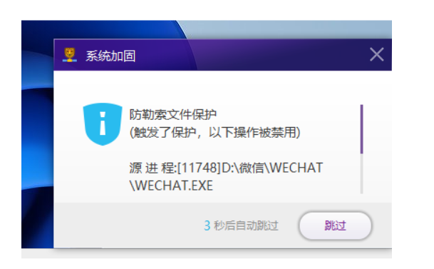 http://bbs.ikaka.com/showtopic-9357211.aspx 3楼,检查是否已将微信添加到防勒索文件保护的白名单中了