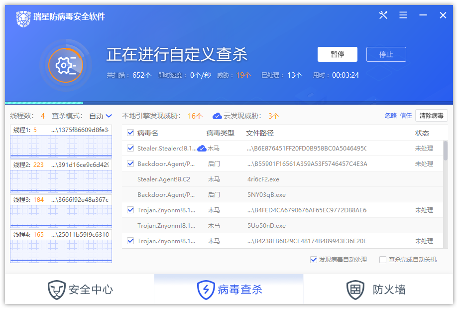 1、主程序闪退,扫描过程中瑞星主程序进程崩溃了,消失了