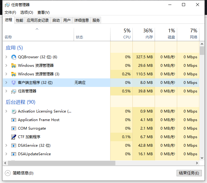 任务管理器提示未响应