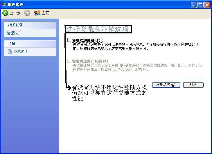 我细看了这个选项,如果你自己用一台机器,又是在家用,哪个登陆方式都一样.因为你没有第二个人用.我是这么想的.