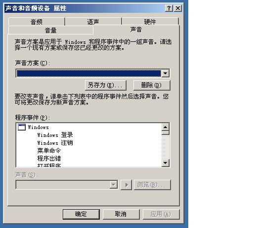 在控制面板--声音和声音设备--声音,声音方案里选一个,再点应用--确定,即可。