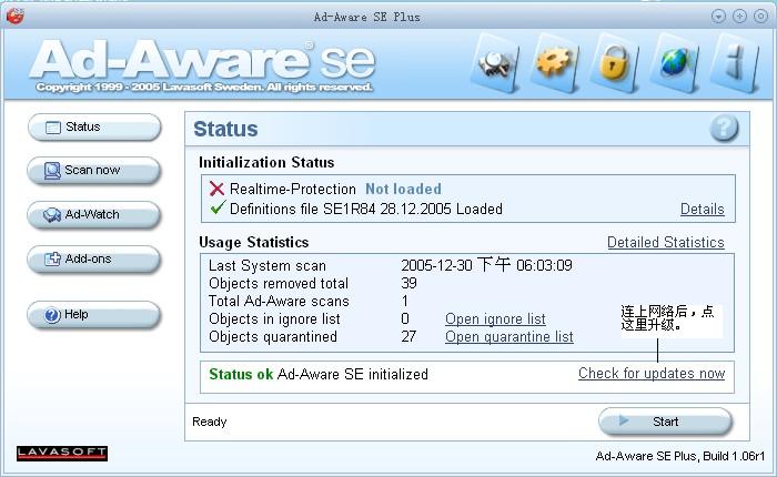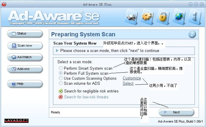 AD介绍:Ad-aware 是一款小巧易用的系统安全工具。它可以扫描你的内存,注册表,硬盘和外部存储器,并且快速的找出广告跟踪文件和相关成分,然后按照你的选择安全的把它们删除。有了它,你就可以很方便的清理你的系统,让你在网上冲浪的同时可以高度的保护自己的隐私。此外Ad-aware还是免费的,有着漂亮的界面,并且支持在线升级。个人认为它是防护墙和杀毒软件的最佳补充。 Ad-aware SE Personal Edition (标准个人版本) 在功能上有了很大的提升。扩展的内存扫描现在可以扫描一个进程所装载的所有模块;新版本采用了最新的CSI(代码次序鉴定)技术来识别已知目标的新变体;扩展的注册表扫描现在可以扫描多用户的注册表分支;扫瞄的速度也有显著的提高,等等。
