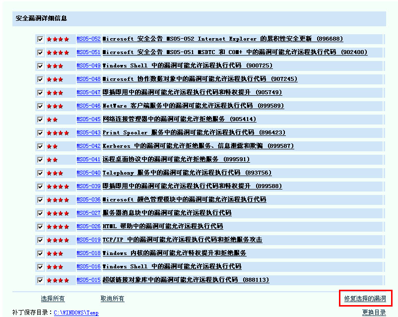 在使用了2006漏洞扫描并修复后,下栽了所有更新补丁(如图)