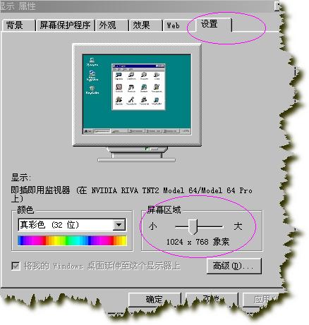 在桌面右击,选择属性,设置好分辨率即可。