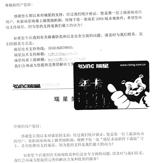 安铁诺防病毒软件2005年新病毒上报年奖名单