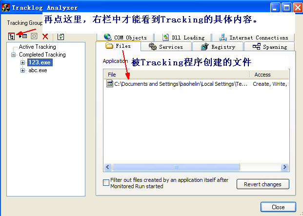 右栏中的services、regisrty等与File含义类似,你是英文老师,就不用我解释其含义了。要说一句的是Spawning:指被Tracking程序调用的程序。