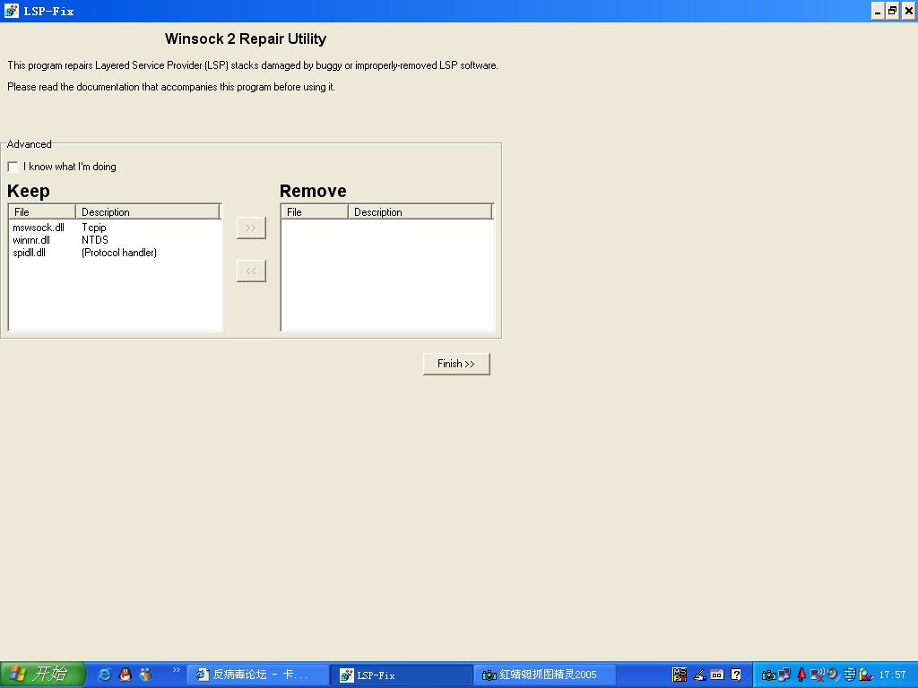 下载LSPFix: http://cexx.org/LSPFix.exe